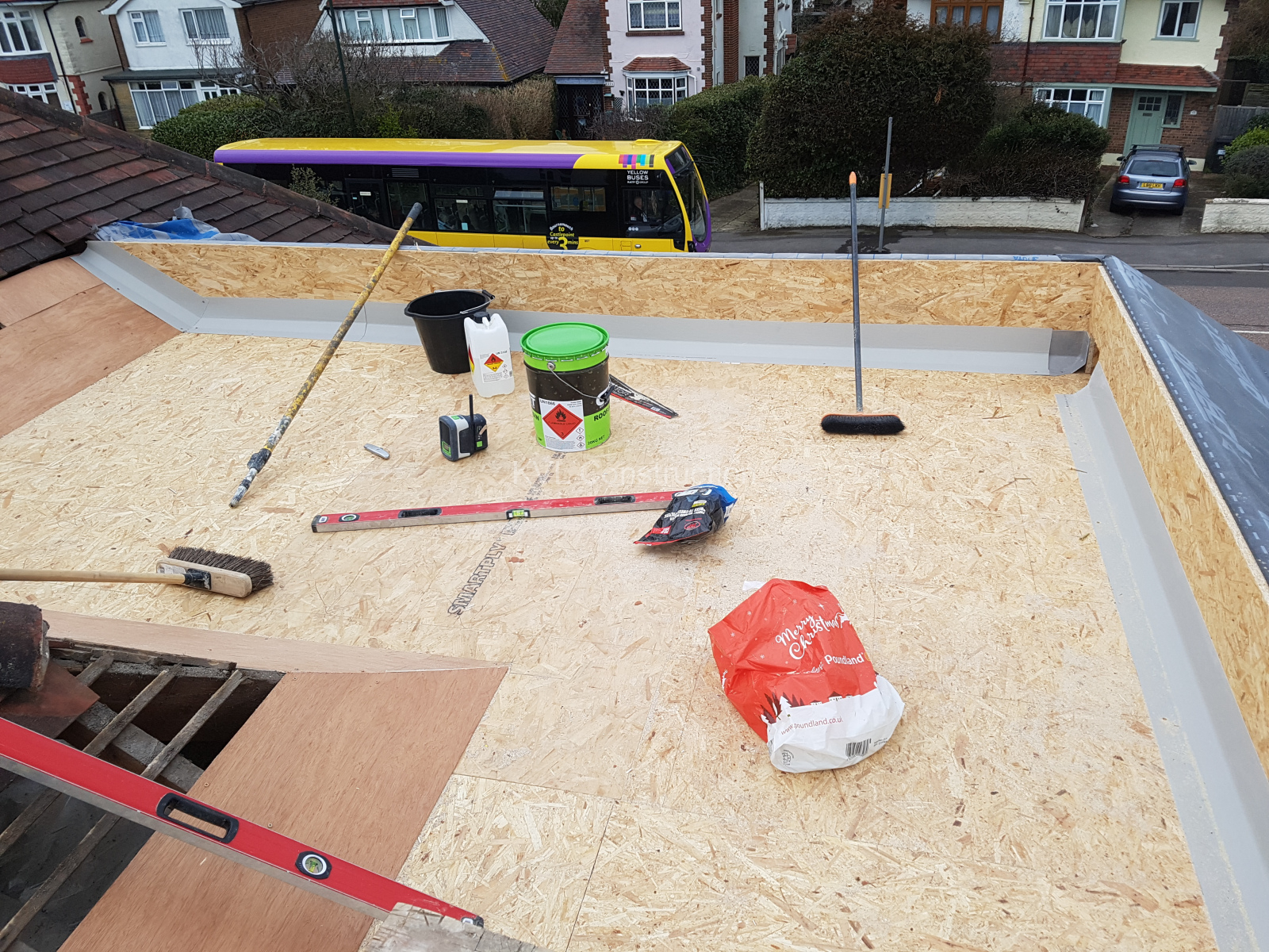 This 2 story extension was built back in 2017, collaborating with Steve Large and his company. A customer asked for an extension on both sides – fun all around! Unfortunately, I’m missing few pictures, but you can see the different stages on the left side of the house. The top roof was finished with fiberglass, something we highly recommend whenever you are building a flat roof.