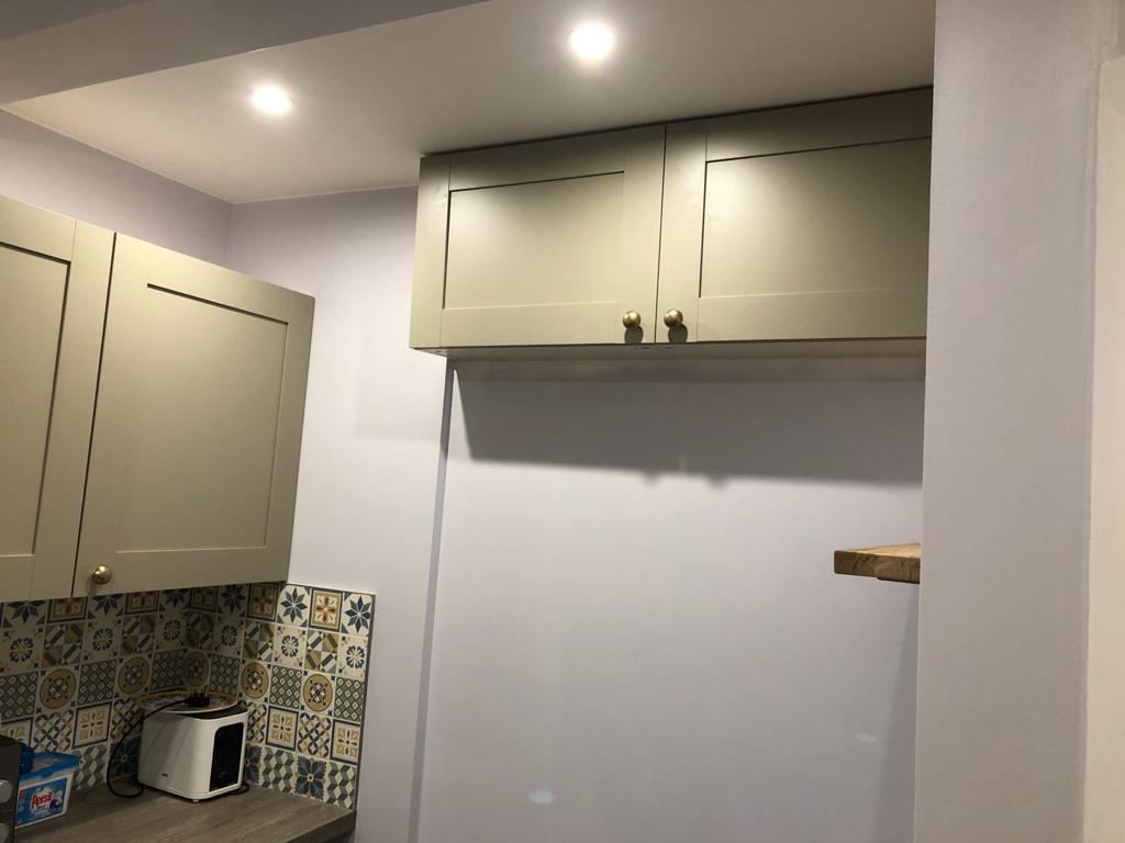 A customer asked us to refurbish their old kitchen. We extended the wall on the right, blocked the back door, and used new space to fit a bigger kitchen. Have a look through the pictures and let us know what you think in the comments.