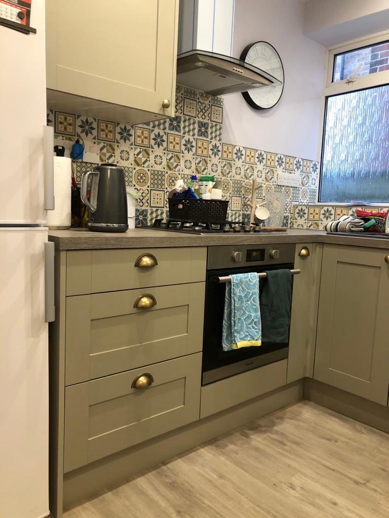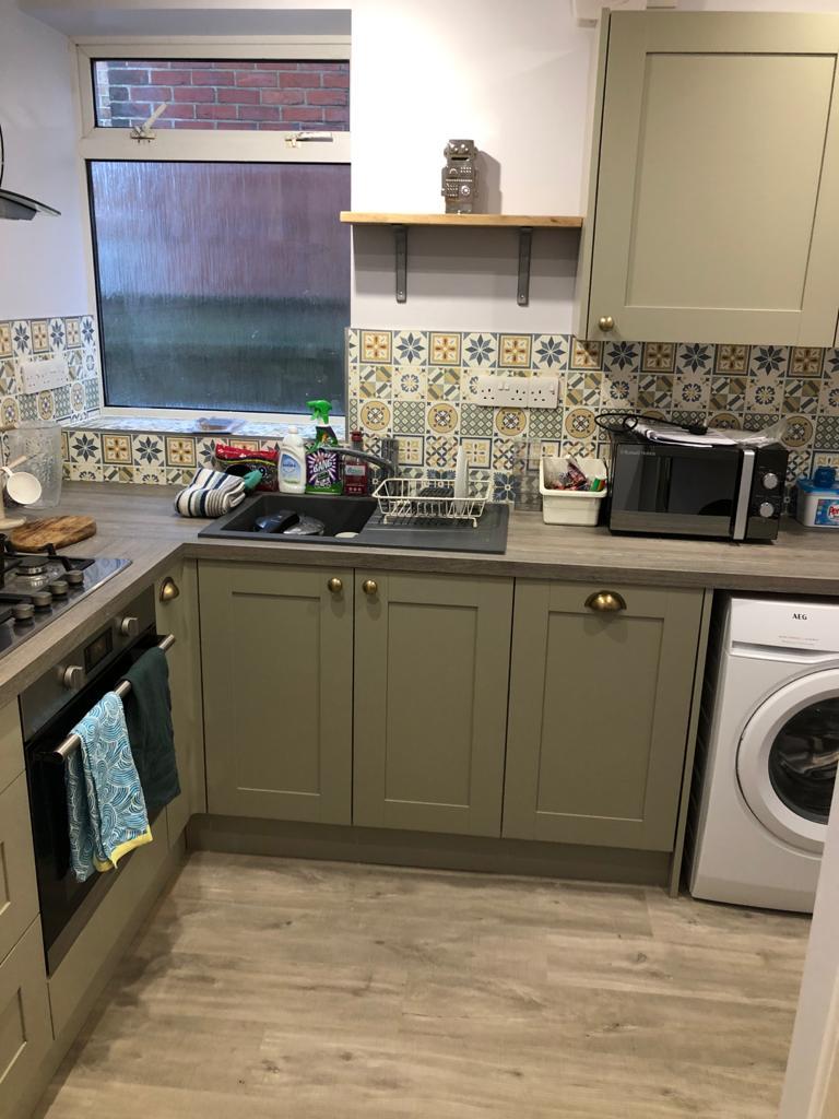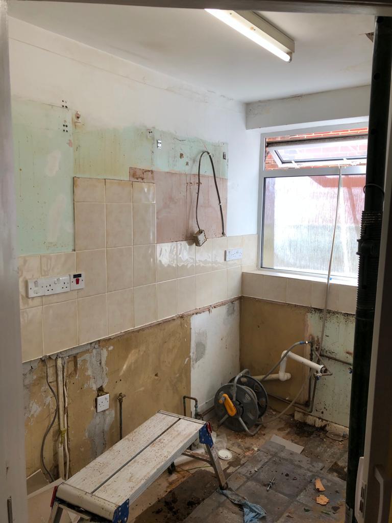 A customer asked us to refurbish their old kitchen. We extended the wall on the right, blocked the back door, and used new space to fit a bigger kitchen. Have a look through the pictures and let us know what you think in the comments.